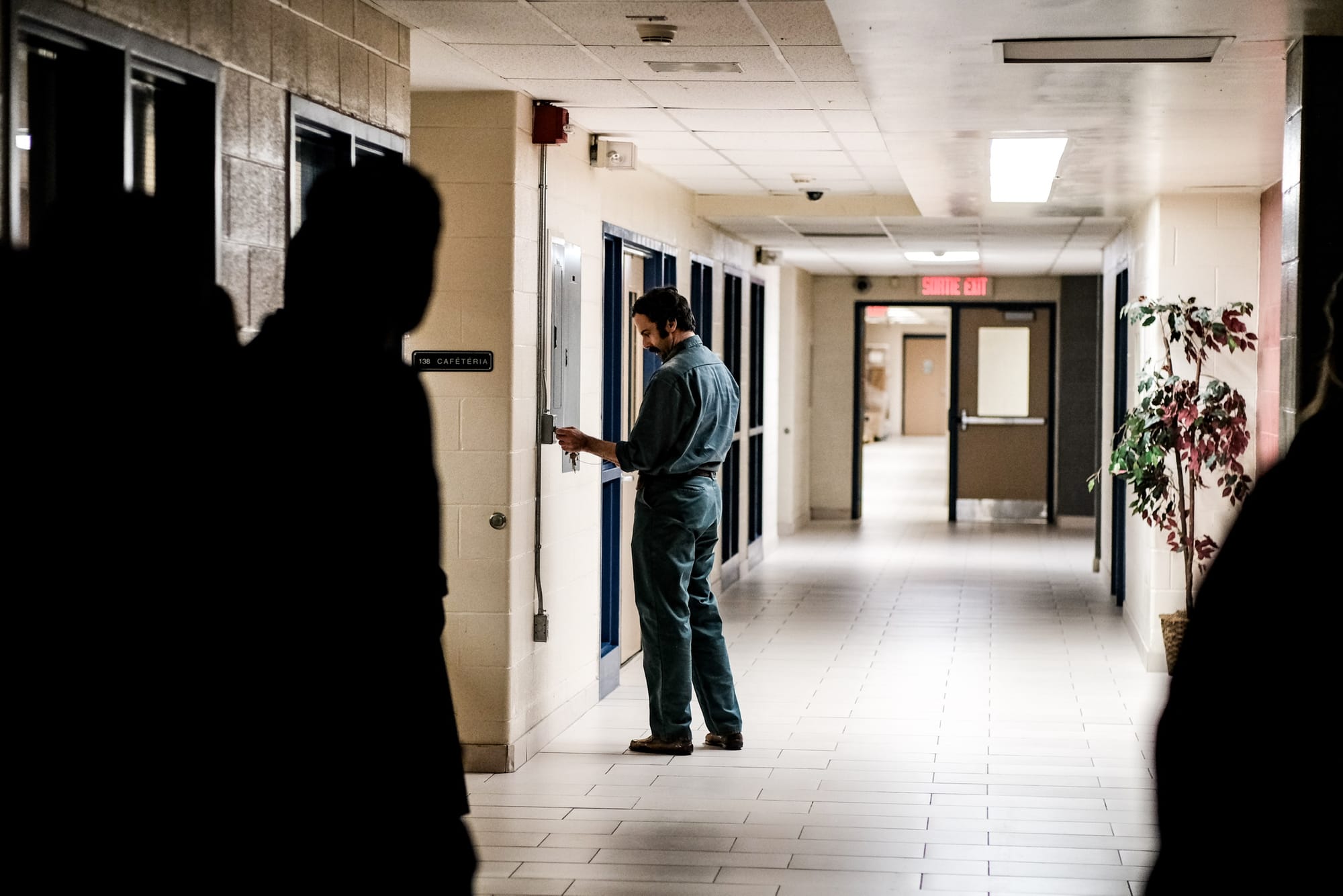 It’s repetitive, lonely, taxing work, one room pretty much like the next. Music from a boombox helps break up the monotony. So does occasionally looking out a window. But the work must get done. The clock is ticking. (Many of the clocks in the rooms have been adjusted to make it feel like it’s the middle of the night.)