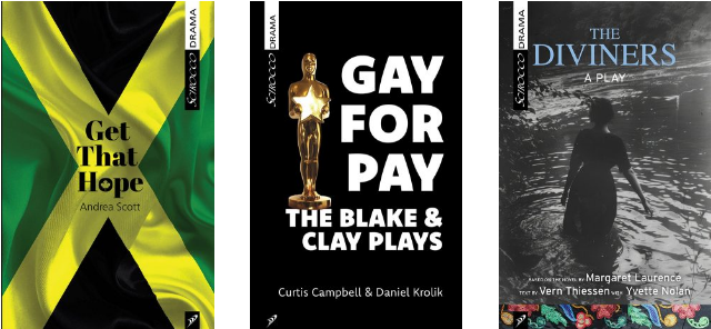This year’s crop of published plays includes Andrea Scott’s Get That Hope and Vern Thiessen and Yvette Nolan’s adaptation of Margaret Laurence’s The Diviners, both of which premiered at Stratford this year, and Curtis Campbell and Daniel Krolik’s Gay for Pay: The Blake & Clay Plays, both of which premiered at the Toronto Fringe.