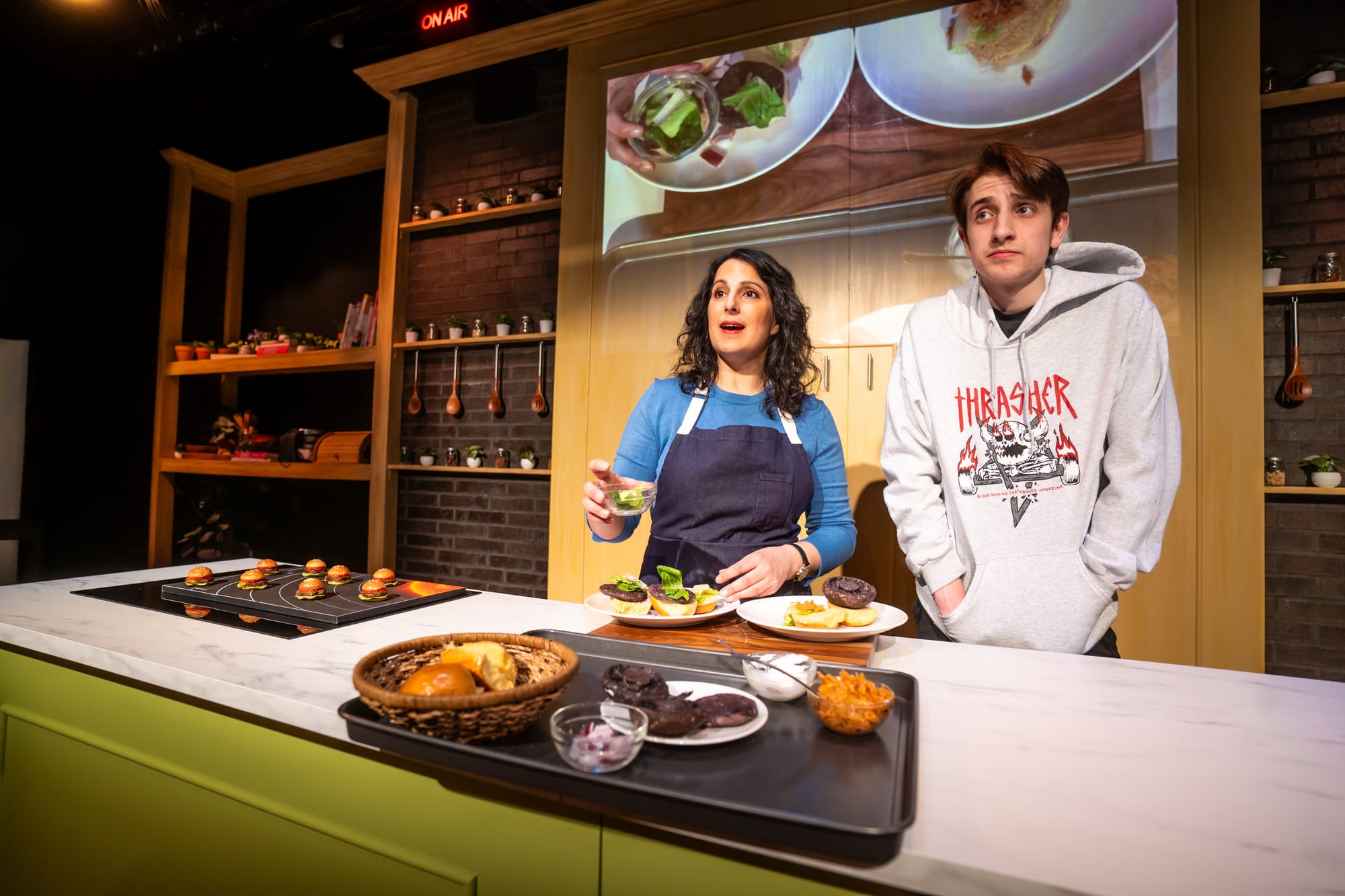 Director Mitchell Cushman ensures that shifts between the play’s various locations — studio and home, kitchen and bedroom — are handled smoothly. Sim Suzer’s handsome set includes two large kitchen islands that act as demonstration tables for Bette’s cooking. These islands can be moved around to clear out the playing area, and during transition scenes, the actors can often roll them threateningly at each other, communicating the unspoken tensions between them.